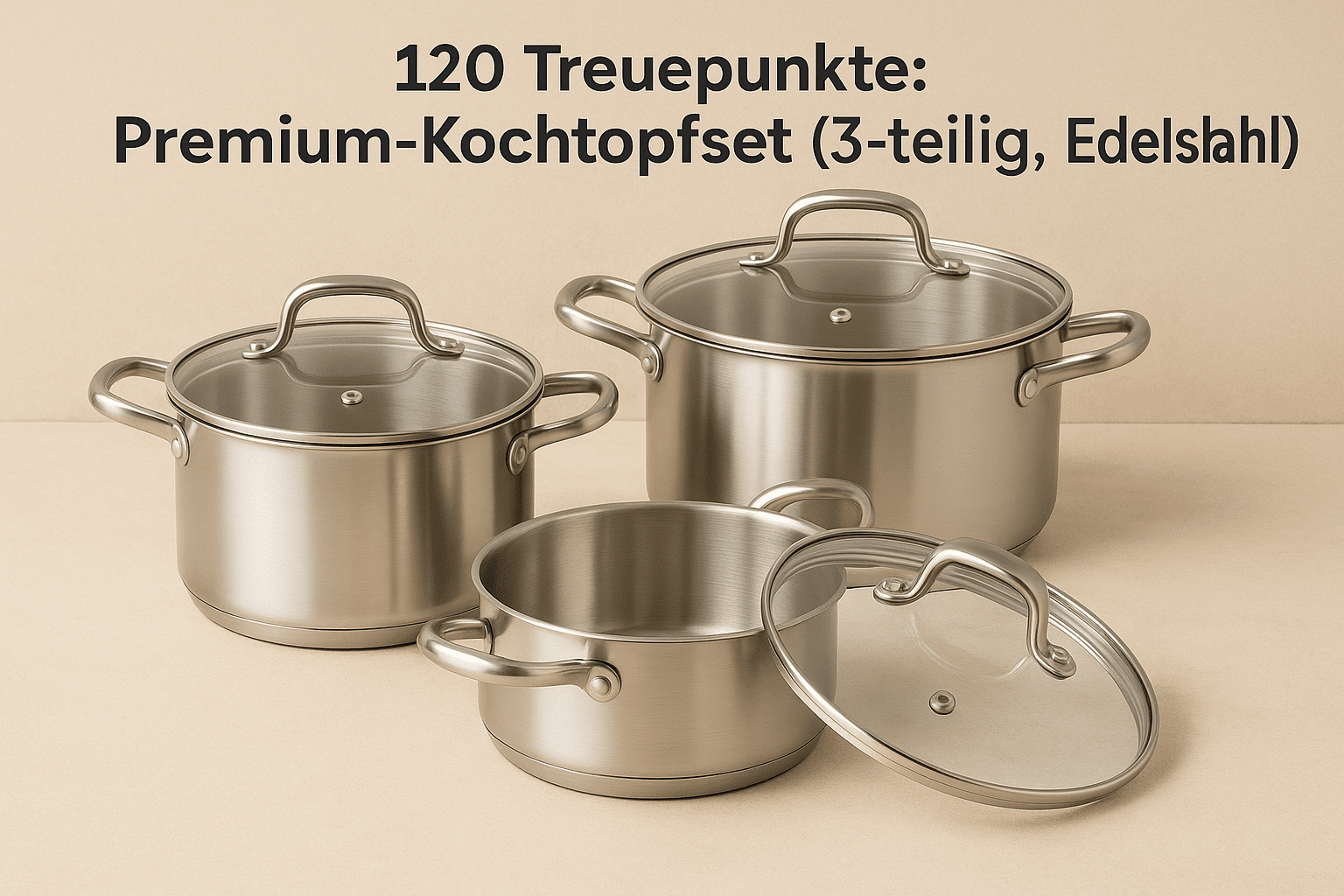 120 Treuepunkte: Premium-Kochtopfset (3-teilig, Edelstahl)